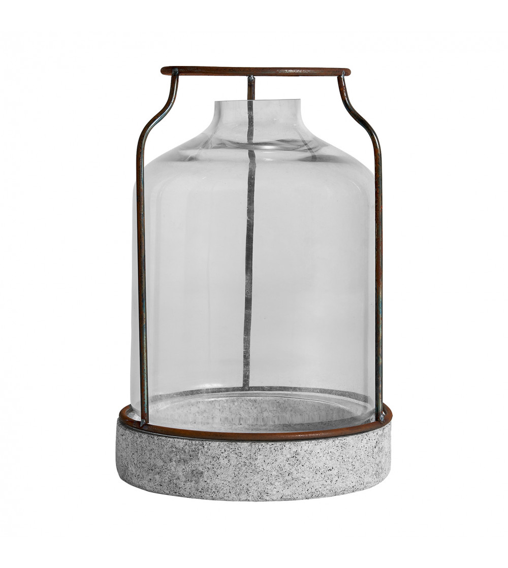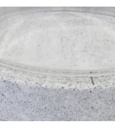PORTAVELA REDONDO, EN COLOR TRANSPARENTE, DE ESTILO SHABBY CHIC. FABRICADO EN VIDRIO, COMBINADO CON PIEDRA.