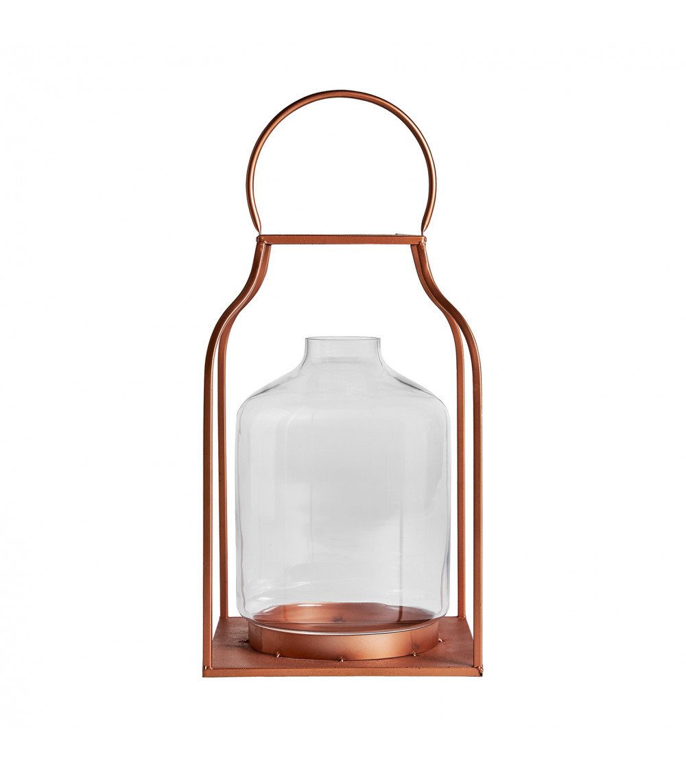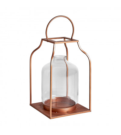 FAROL REDONDO, EN COLOR COBRE, DE ESTILO INDUSTRIAL. FABRICADO EN VIDRIO, COMBINADO CON ACERO. 60% ACERO / 40% VIDRIO.