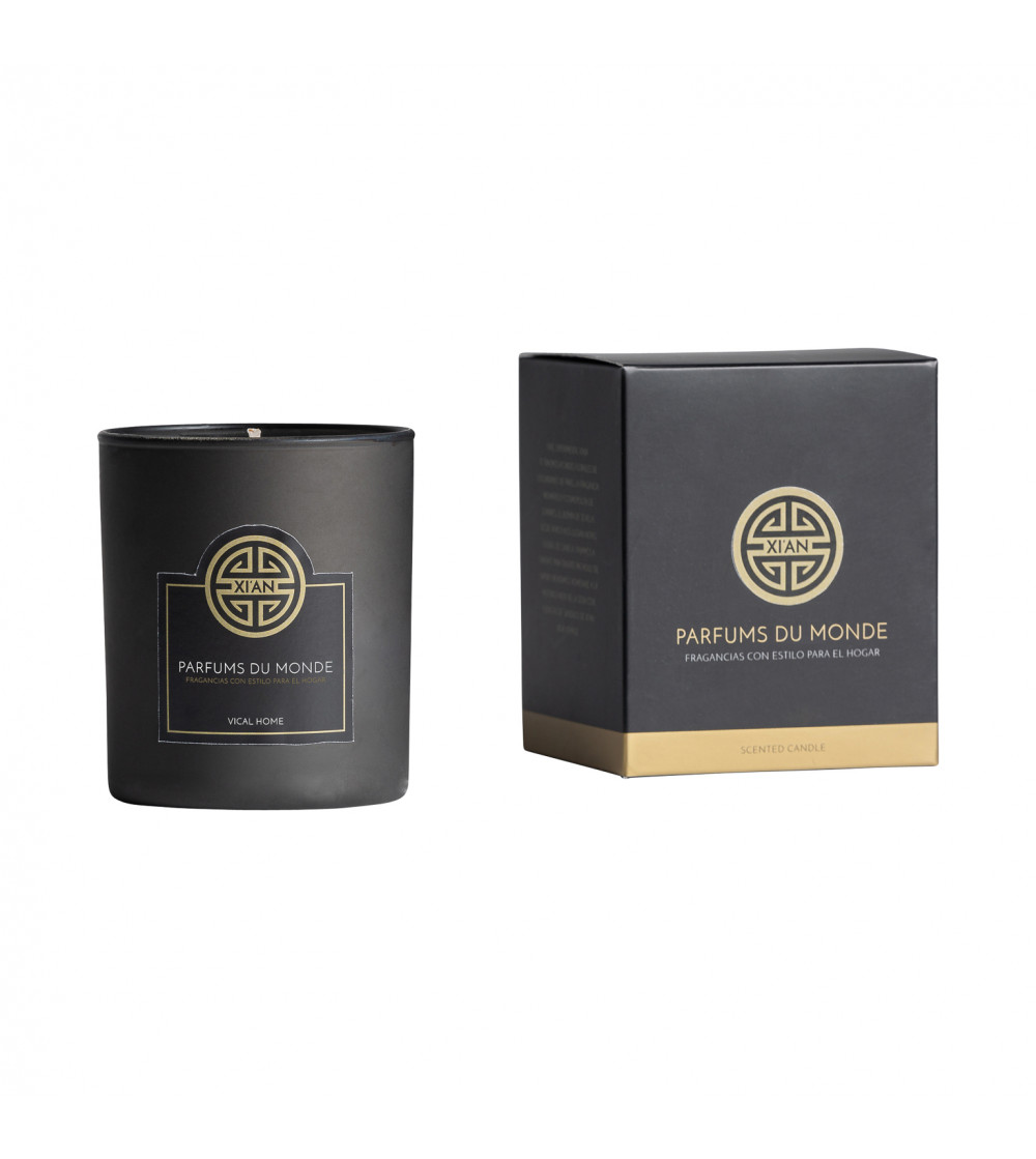 VELA GRANDE XIAN, EN COLOR NEGRO, DE ESTILO CLÁSICO. FABRICADO EN CERA, COMBINADO CON VIDRIO.