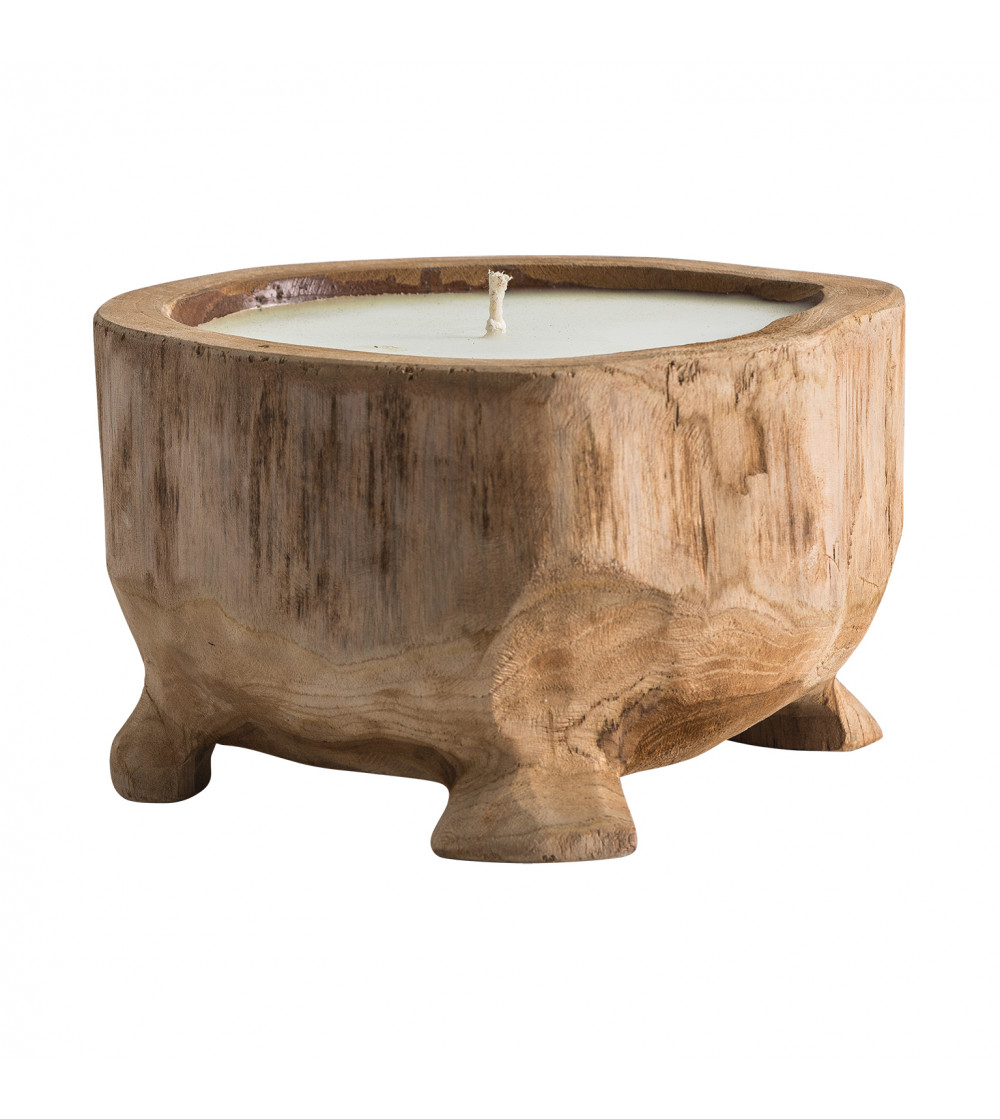 PORTAVELA, EN COLOR NATURAL, DE ESTILO ÉTNICO. FABRICADO EN MADERA DE TEKA, COMBINADO CON CERA. PUEDE VARIAR DE FORMA Y TAMAÑO.