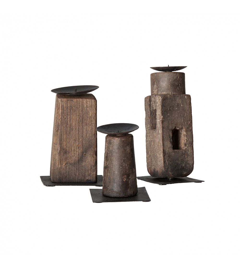 PORTAVELA J/3 ZWAIA, EN COLOR MARRÓN ENVEJECIDO, DE ESTILO ÉTNICO. FABRICADO EN MADERA DE MANGO RECICLADA. PUEDE VARIAR UN POCO EL TAMAÑO Y EL ACABADO YA QUE SE TRATA DE UNA PIEZA ARTESANAL.