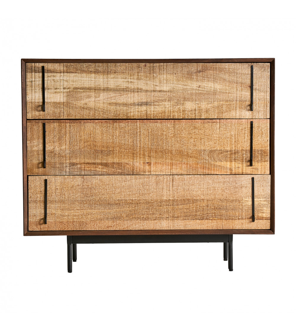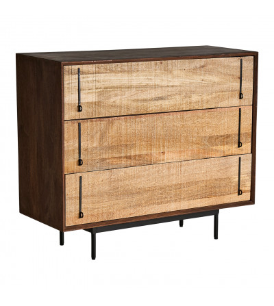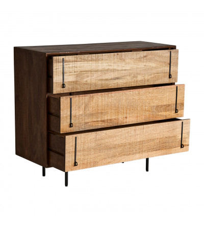 CÓMODA TRAP, EN COLOR NEGRO/NATURAL, DE ESTILO CONTEMPORÁNEO. FABRICADO EN MADERA DE MANGO, COMBINADO CON HIERRO. PRODUCTO DESMONTABLE.