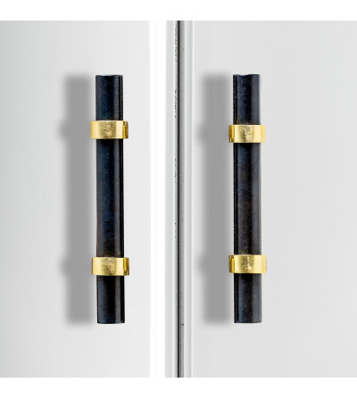 TIRADOR ANE, EN COLOR NEGRO/ORO, DE ESTILO ART DECO. FABRICADO EN HIERRO.