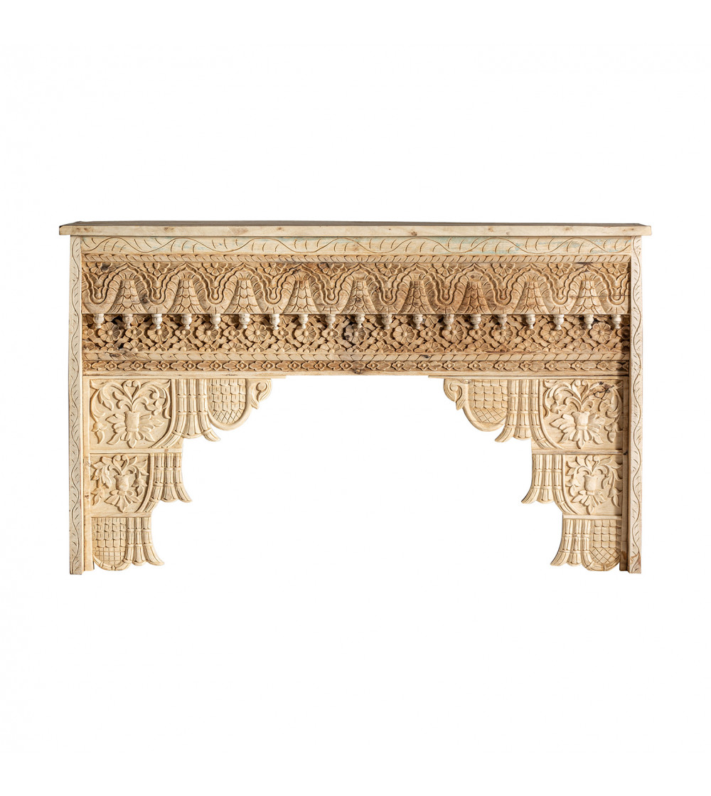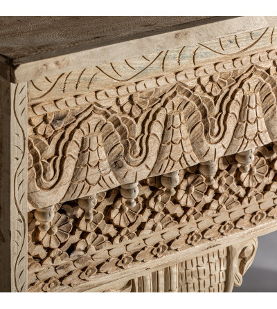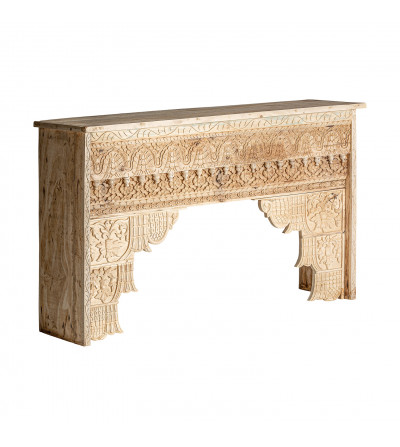 CONSOLA AKEBA, EN COLOR NATURAL ENVEJECIDO, DE ESTILO ÉTNICO. FABRICADO EN MADERA DE TEKA. PUEDE VARIAR DE COLOR FORMA Y TAMAÑO YA QUE SE TRATA DE UNA PIEZA ARTESANAL.