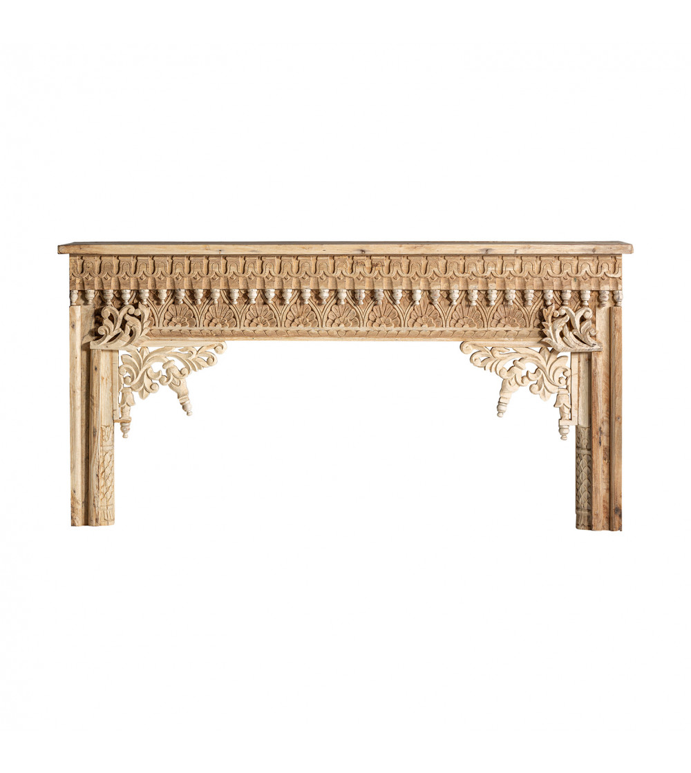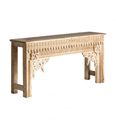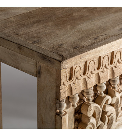 CONSOLA BEKILY, EN COLOR NATURAL ENVEJECIDO, DE ESTILO ÉTNICO. FABRICADO EN MADERA DE TEKA. PUEDE VARIAR DE COLOR,FORMA Y TAMAÑO.