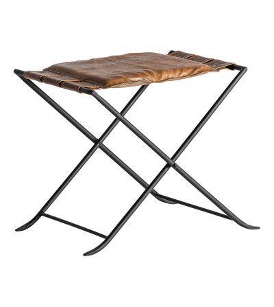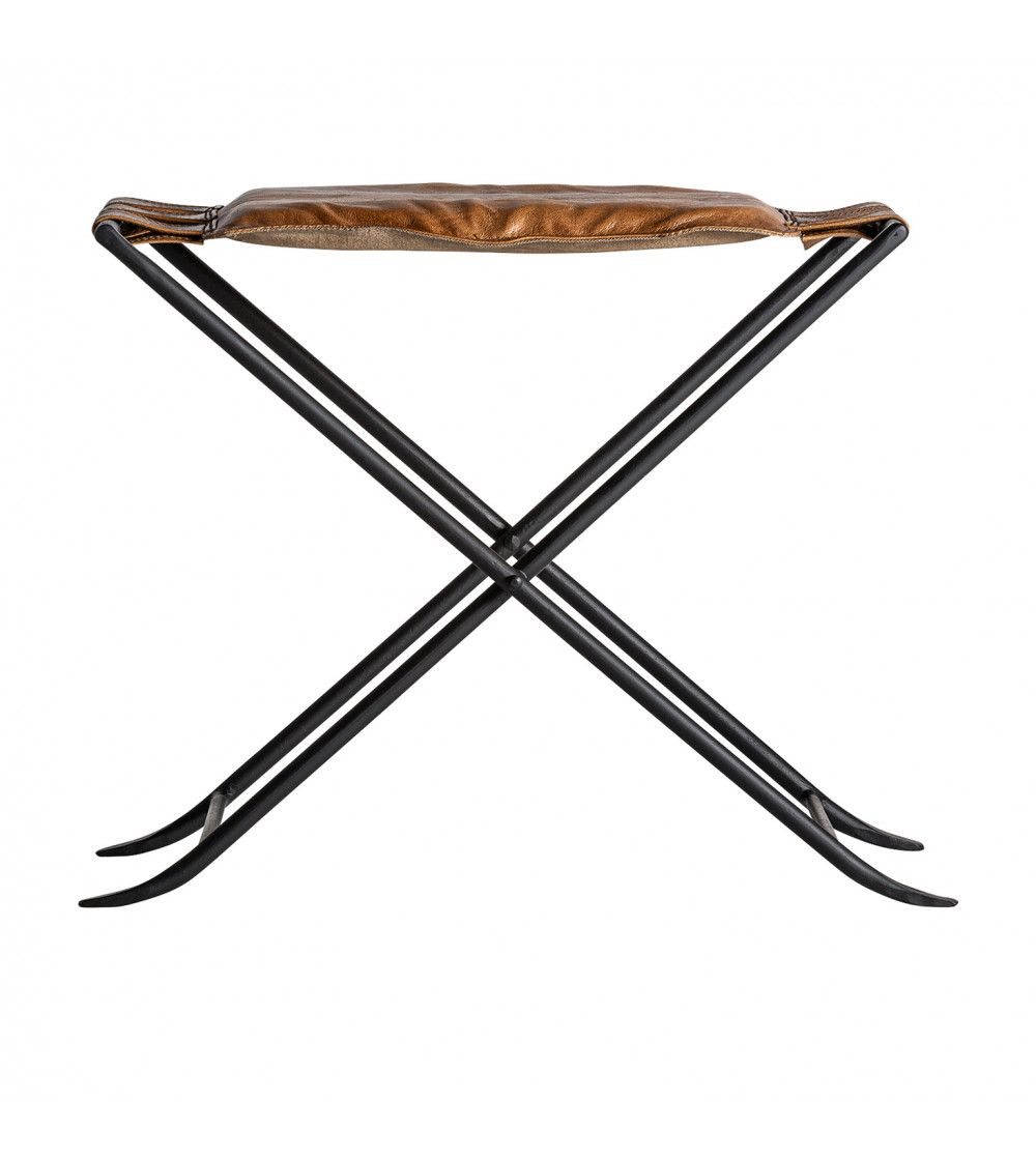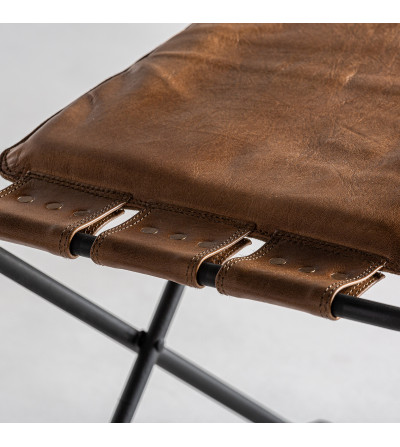 TABURETE ALMSTOCK, EN COLOR MARRÓN, DE ESTILO VINTAGE. FABRICADO EN CUERO, COMBINADO CON HIERRO.