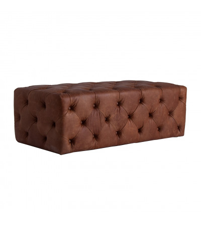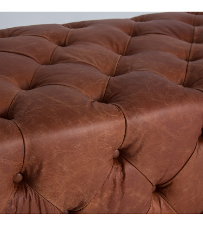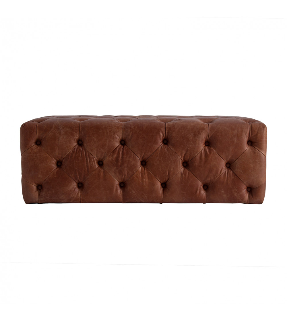 REPOSAPIÉS RIMA, EN COLOR MARRÓN, DE ESTILO VINTAGE. FABRICADO EN MADERA DE ABETO, COMBINADO CON CUERO Y ESPUMA.