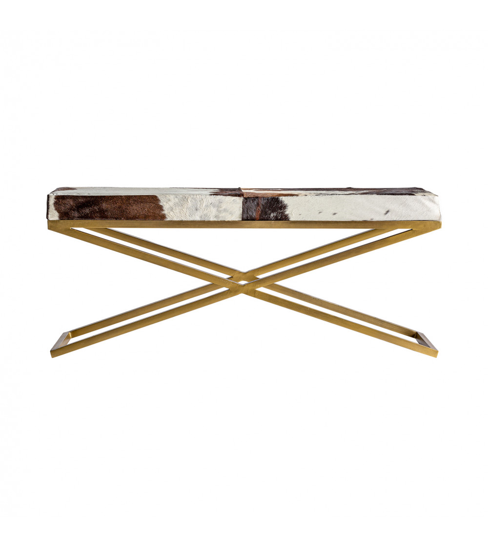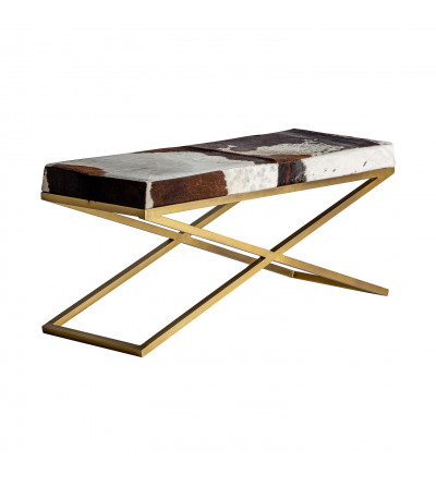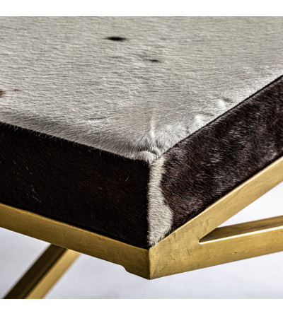 TABURETE WAYLAND, EN COLOR MARRÓN/ORO, DE ESTILO ART DECO. FABRICADO EN HIERRO, COMBINADO CON CUERO.