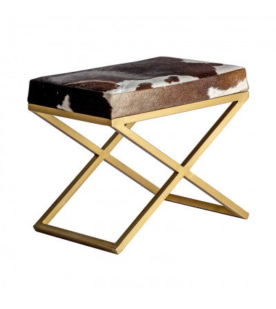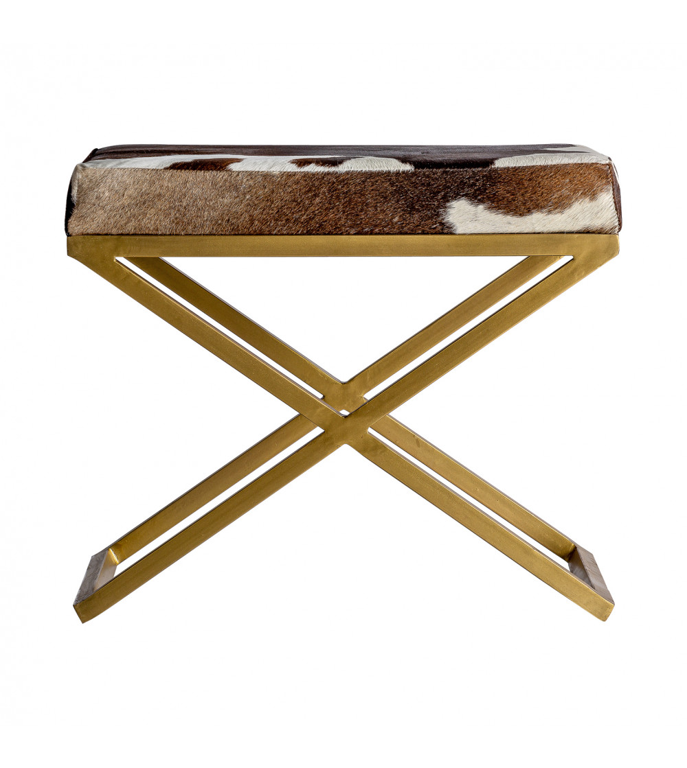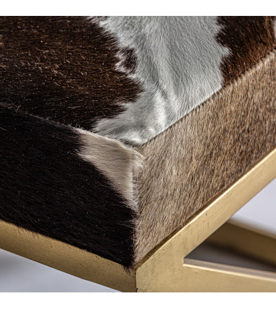 TABURETE WAYLAND, EN COLOR MARRÓN/ORO, DE ESTILO ART DECO. FABRICADO EN HIERRO, COMBINADO CON CUERO.