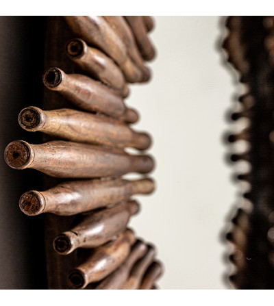 ESPEJO, EN COLOR NATURAL, DE ESTILO COLONIAL. FABRICADO EN MADERA DE MANGO, COMBINADO CON ESPEJO. MADERA RECICLADA. PUEDE VARIAR DE TAMAÑO Y ACABADO YA QUE SE TRATA DE UNA PIEZA ARTESANAL.
