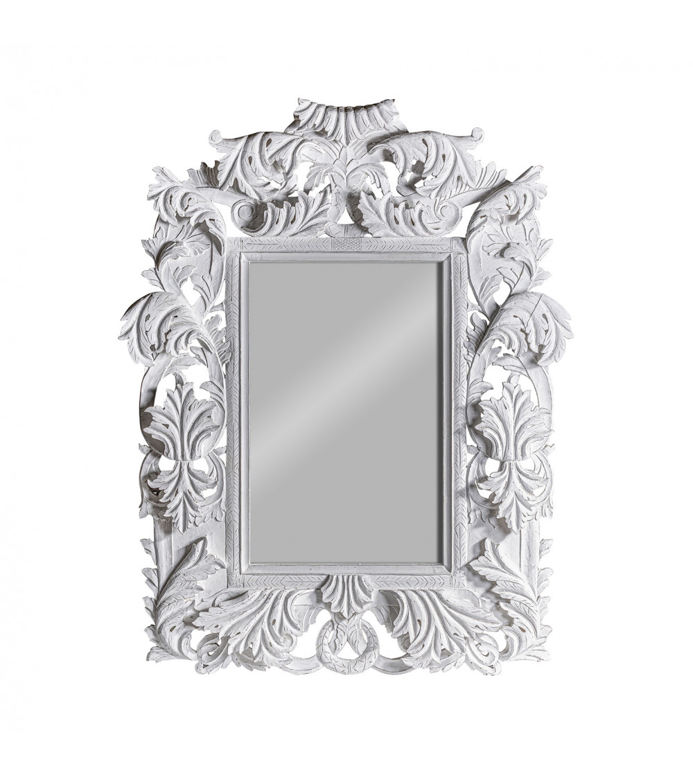 ESPEJO DIANTHE, EN COLOR BLANCO ROTO ENVEJECIDO, DE ESTILO PROVENZAL. FABRICADO EN MADERA DE TEKA, COMBINADO CON ESPEJO.