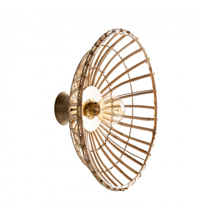 LÁMPARA DE PARED, EN COLOR NATURAL/ORO, DE ESTILO ART DECO. FABRICADO EN HIERRO, COMBINADO CON FIBRA NATURAL.