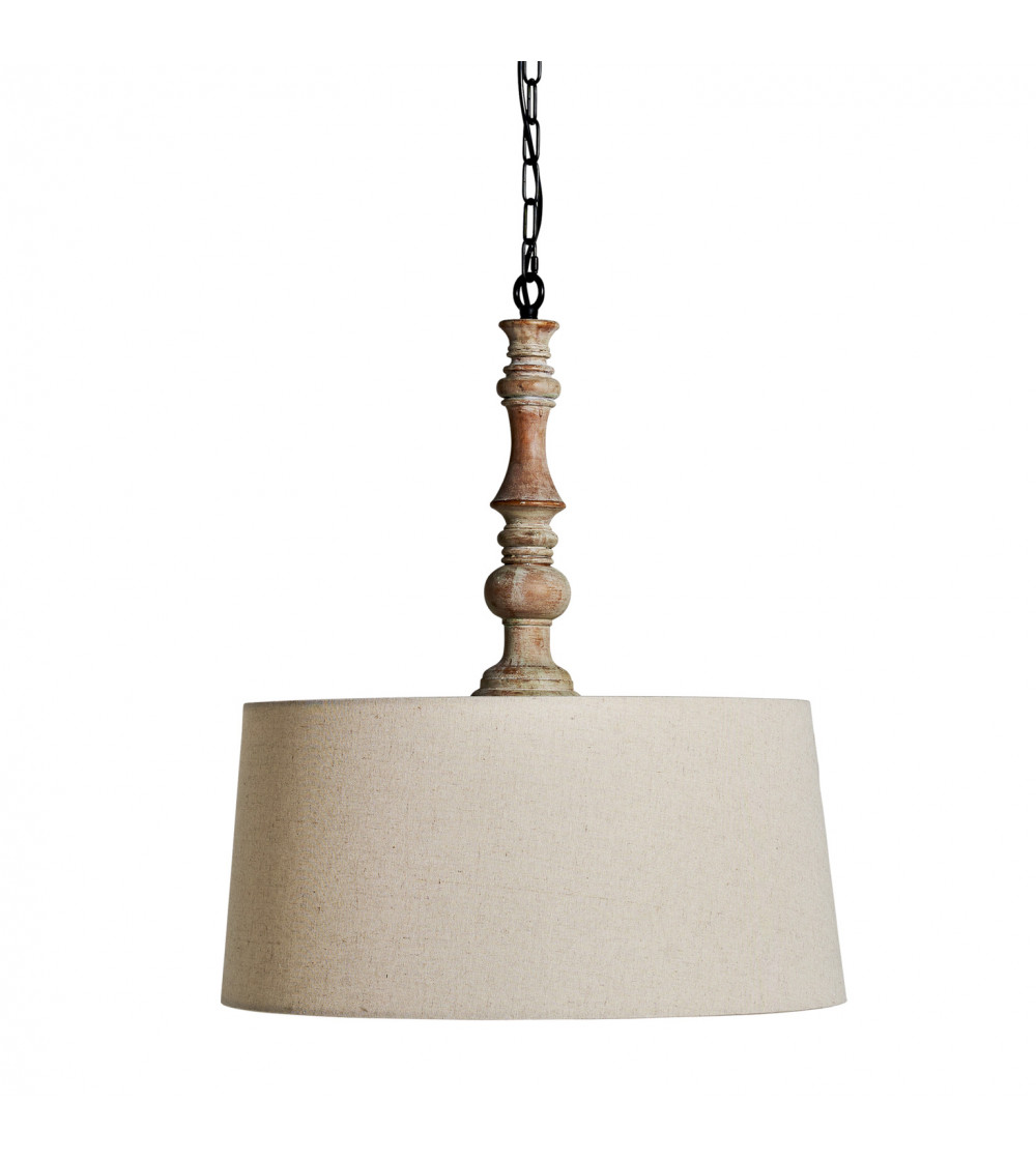 LÁMPARA DE TECHO, EN COLOR NATURAL, DE ESTILO PROVENZAL. FABRICADO EN HIERRO, COMBINADO CON MADERA ANTIGUA Y POLIÉSTER.