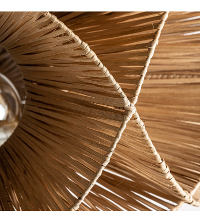 LÁMPARA DE TECHO, EN COLOR NATURAL, DE ESTILO CONTEMPORÁNEO. FABRICADO EN RATÁN, COMBINADO CON HIERRO.