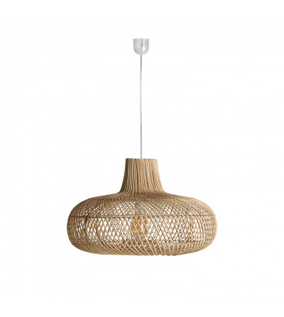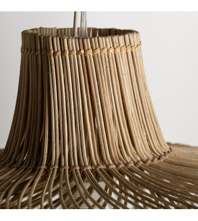 LÁMPARA DE TECHO TISNO, EN COLOR NATURAL, DE ESTILO CONTEMPORÁNEO. FABRICADO EN RATÁN, COMBINADO CON HIERRO.
