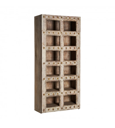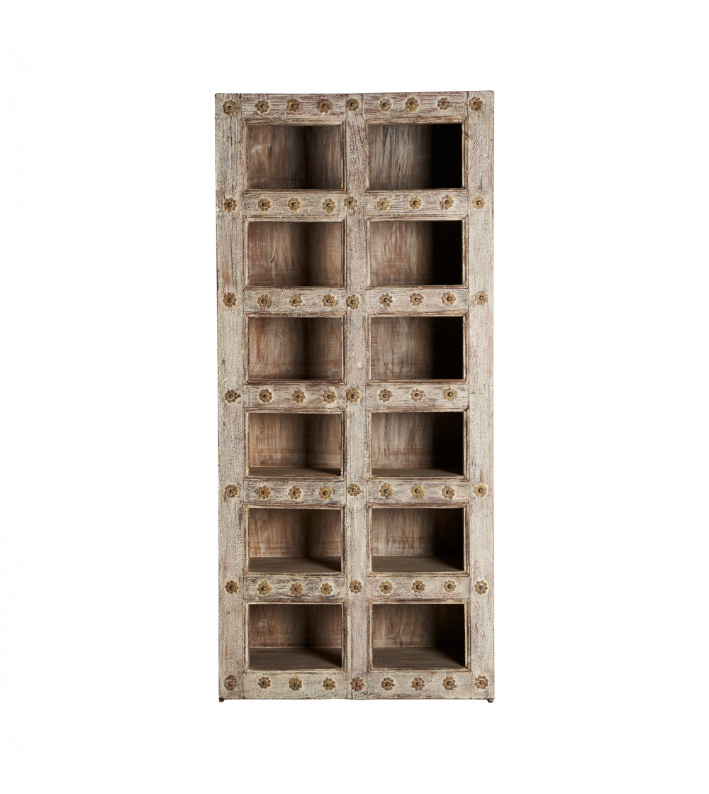 LIBRERÍA ENSHI, EN COLOR BLANCO ROTO ENVEJECIDO, DE ESTILO ORIENTAL. FABRICADO EN MADERA DE TEKA. DEBIDO A LA ELABORACIÓN ARTESANAL, PUEDE CAMBIAR DE FORMA, TAMAÑO Y COLOR.