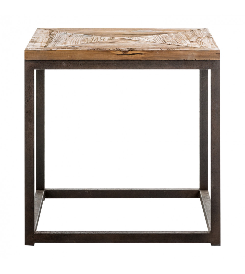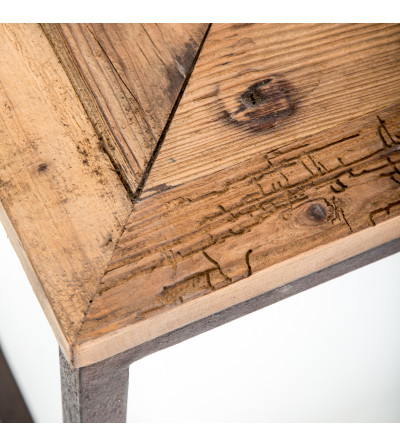MESA AUXILIAR VICHY, EN COLOR NEGRO/NATURAL ENVEJECIDO, DE ESTILO INDUSTRIAL. FABRICADO EN MADERA DE PINO RECICLADO, COMBINADO CON HIERRO. FABRICACIÓN ARTESANAL. ENTENDEMOS LAS VARIACIONES DE TONALIDAD O CIERTAS IMPERFECCIONES (GRIETAS, NUDOS, MARCAS) COMO UN VALOR AÑADIDO QUE LA CONVIERTEN EN PIEZA ÚNICA..