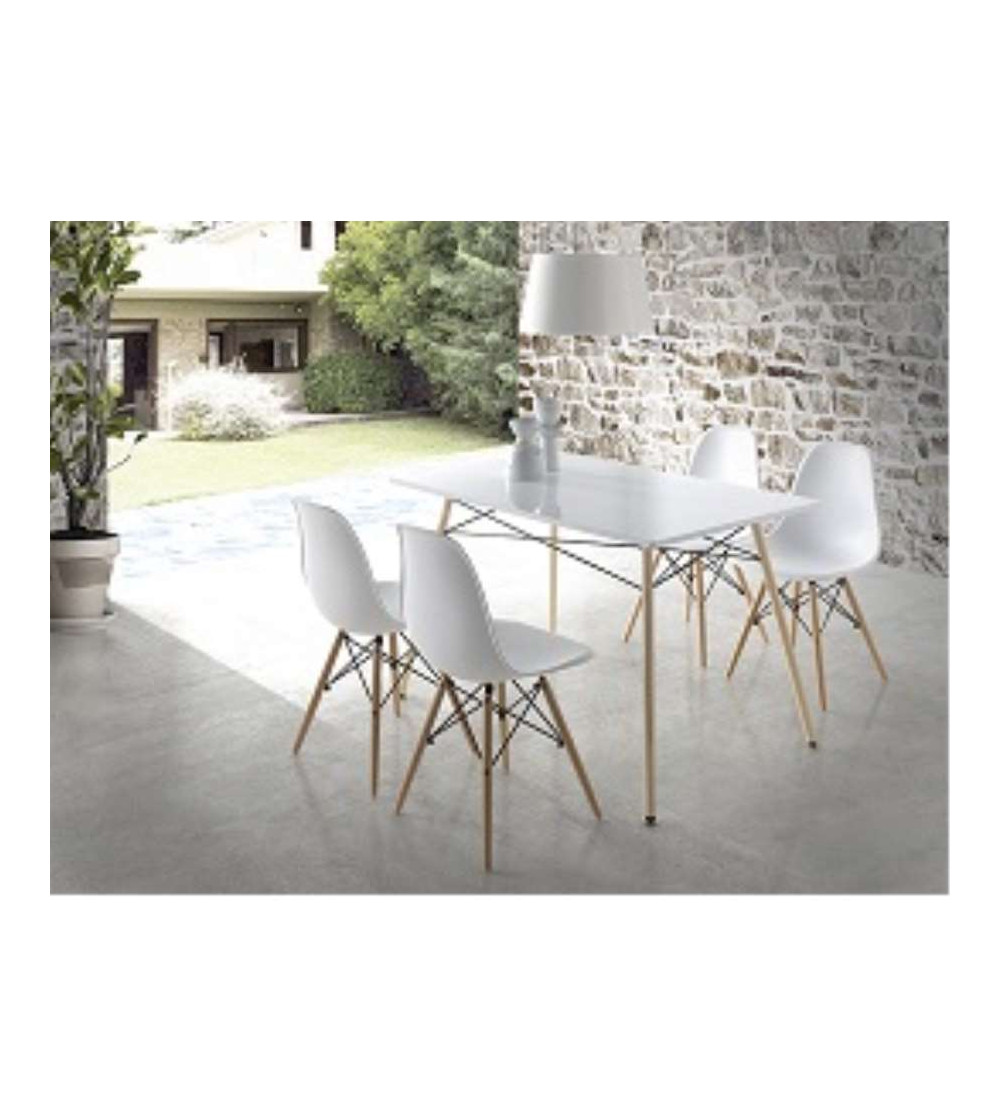 Mesa fija con encimera en MDF blanco y patas en metal con vinilo efecto madera