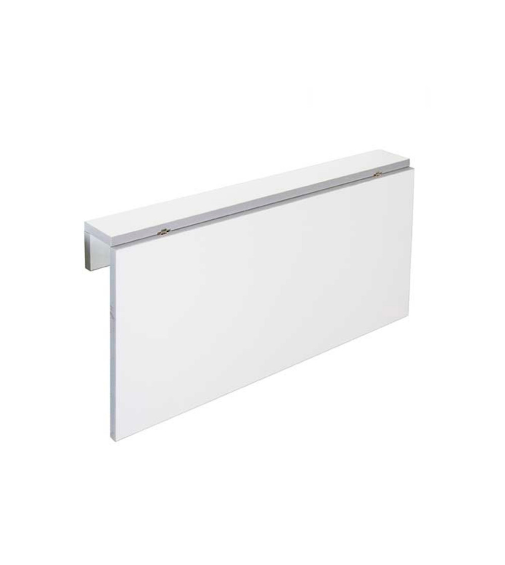 Mesa de cocina con encimera abatible ideal para cocinas con espacios reducidos. Realizada en MDF laminado BLANCO. Estructura metálica con sistema abatible realizado en acero galvanizado.