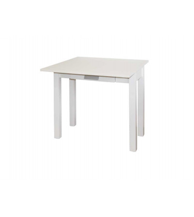 Mesa de cocina con encimera de apertura tipo libro. Estructura y encimera en MDF laminada blanco.