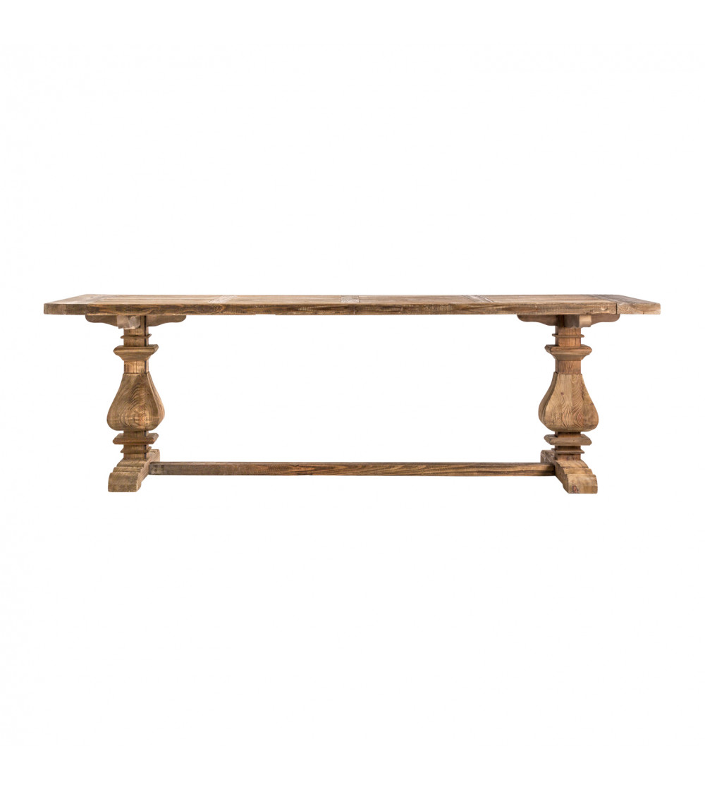 MESA COMEDOR ABO, EN COLOR NATURAL, DE ESTILO CLÁSICO. FABRICADO EN MADERA DE PINO RECICLADO. PRODUCTO DESMONTABLE.