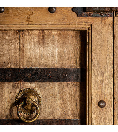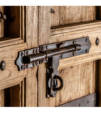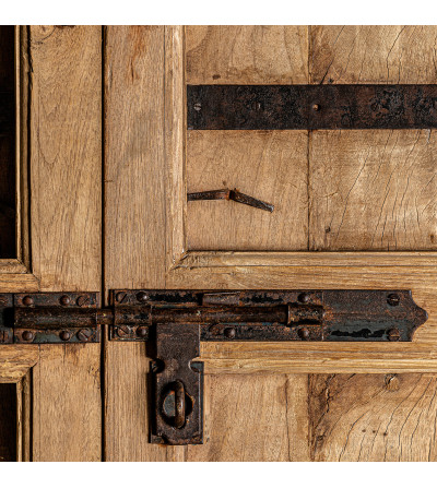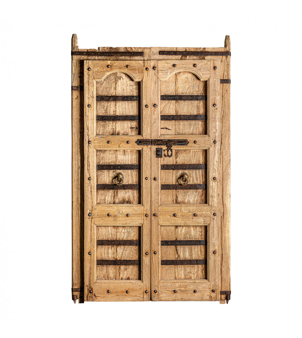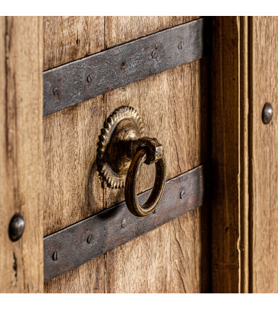 PUERTA ERIX, EN COLOR NATURAL ENVEJECIDO, DE ESTILO ÉTNICO. FABRICADO EN MADERA DE TEKA. PRODUCTO DESMONTABLE.