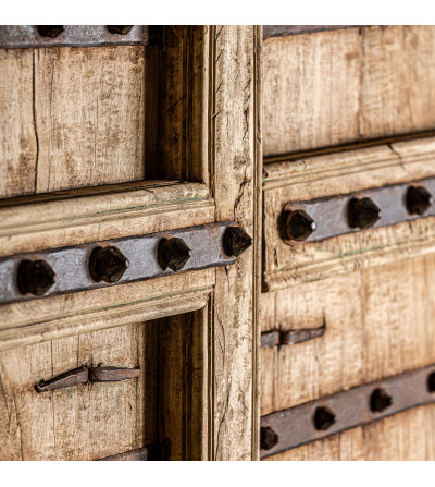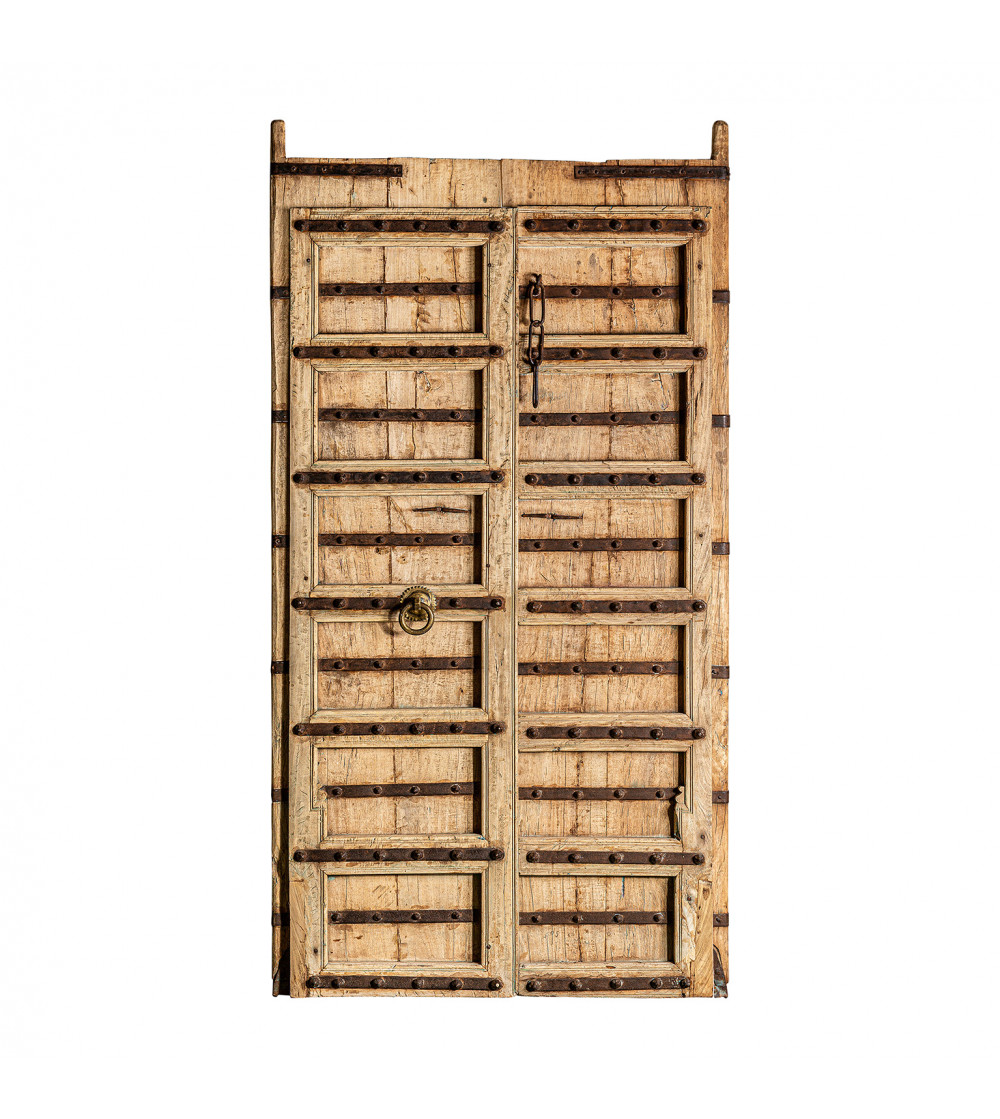 PUERTA DELBINA, EN COLOR NATURAL ENVEJECIDO, DE ESTILO ÉTNICO. FABRICADO EN MADERA DE TEKA. PRODUCTO DESMONTABLE.