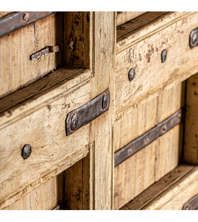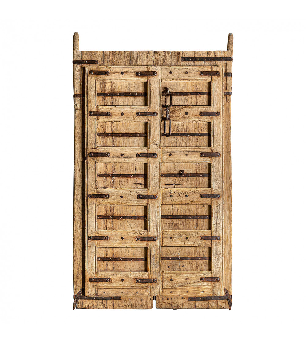 PUERTA EVANTHE, EN COLOR NATURAL ENVEJECIDO, DE ESTILO ÉTNICO. FABRICADO EN MADERA DE TEKA. PRODUCTO DESMONTABLE.
