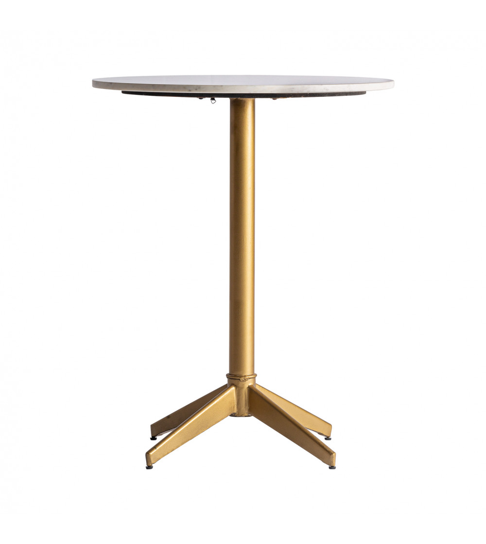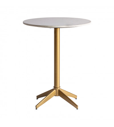 MESA BAR SAYDA, EN COLOR BLANCO/ORO, DE ESTILO ART DECO. FABRICADO EN HIERRO, COMBINADO CON MÁRMOL.