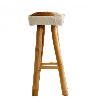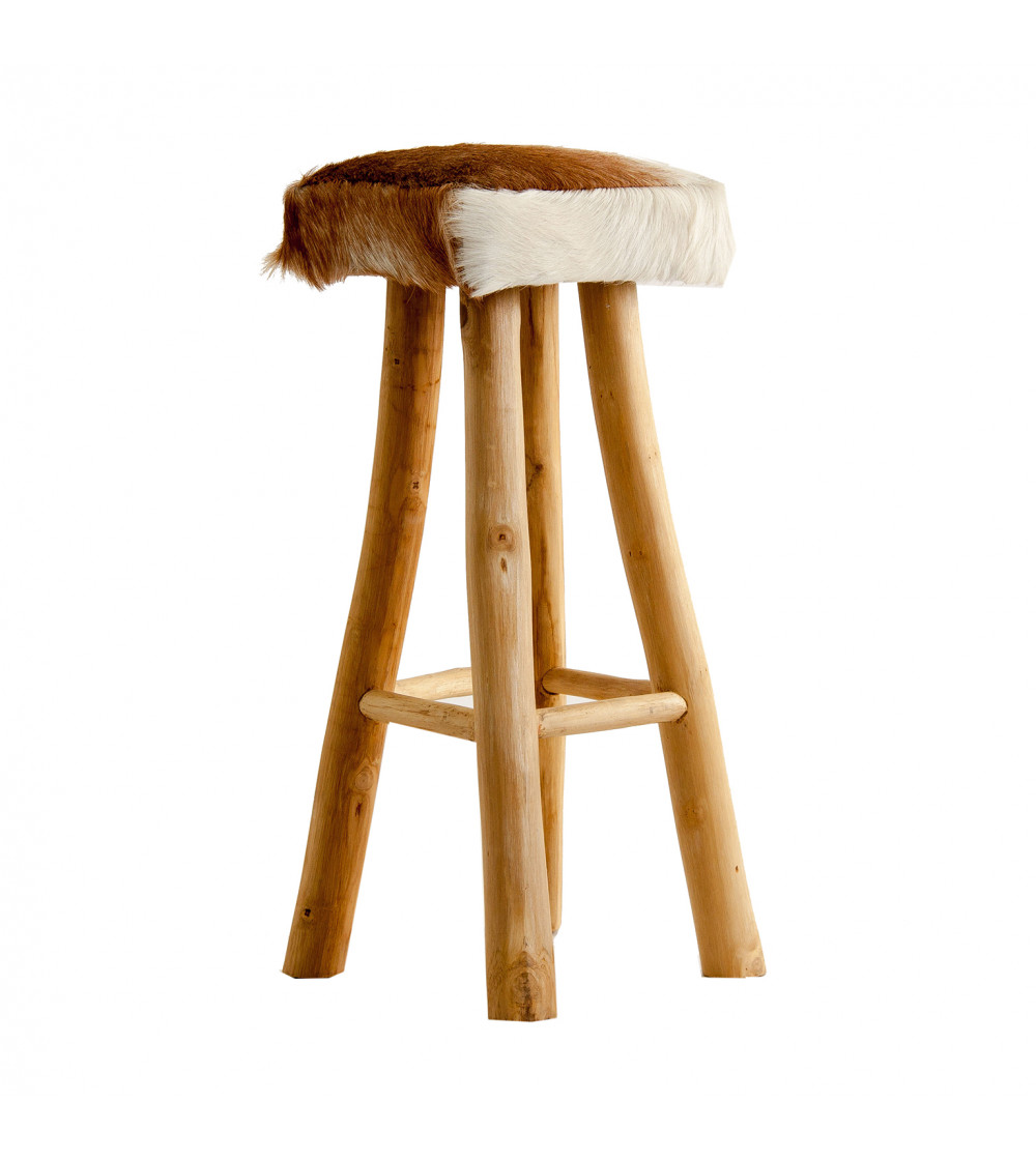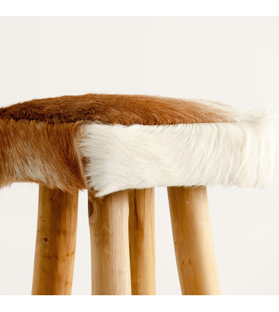 TABURETE DALLAS, EN COLOR NATURAL/BLANCO, DE ESTILO NÓRDICO. FABRICADO EN MADERA DE PINO RECICLADO, COMBINADO CON PIEL.