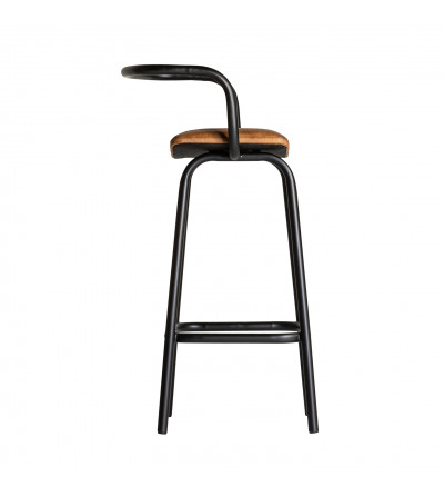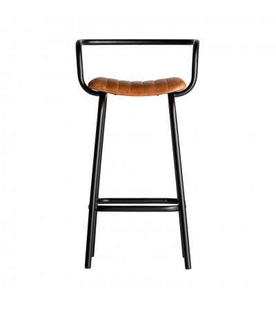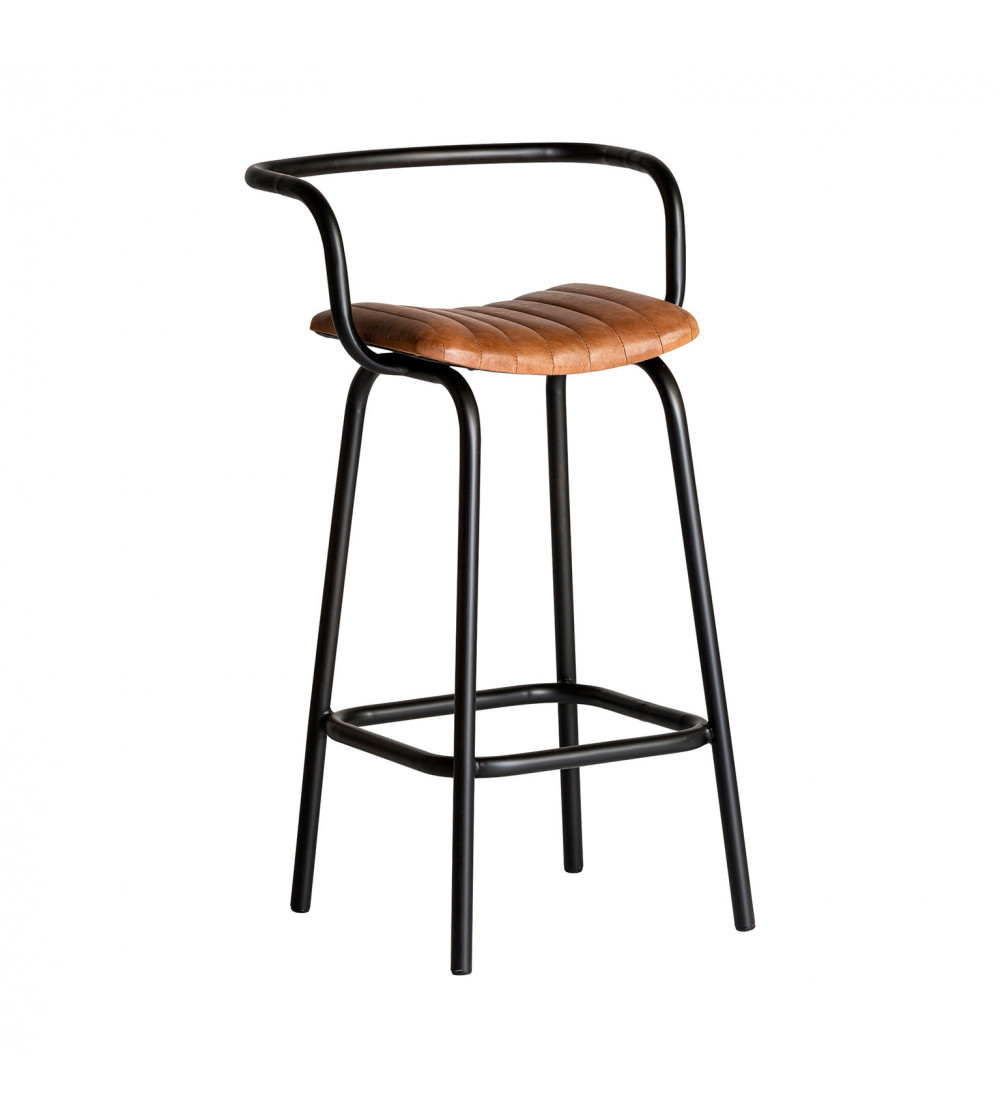TABURETE CHADRON, EN COLOR MARRÓN, DE ESTILO VINTAGE. FABRICADO EN HIERRO, COMBINADO CON CUERO.