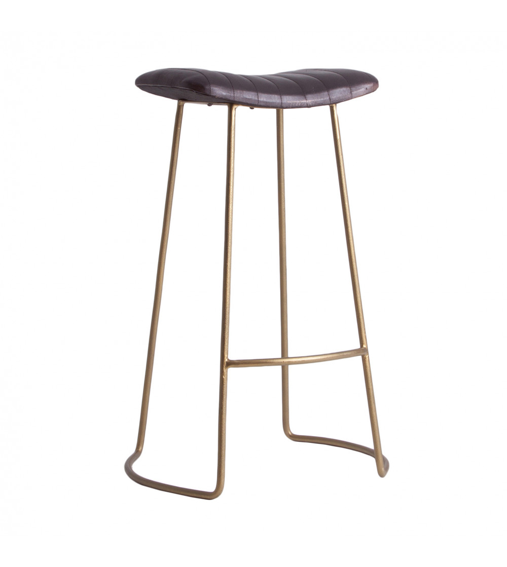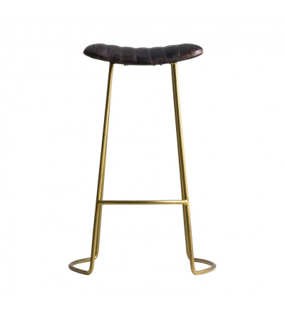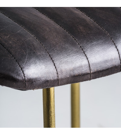 TABURETE ANKLAM, EN COLOR MARRÓN/ORO, DE ESTILO ART DECO. FABRICADO EN HIERRO, COMBINADO CON PIEL Y ESPUMA.