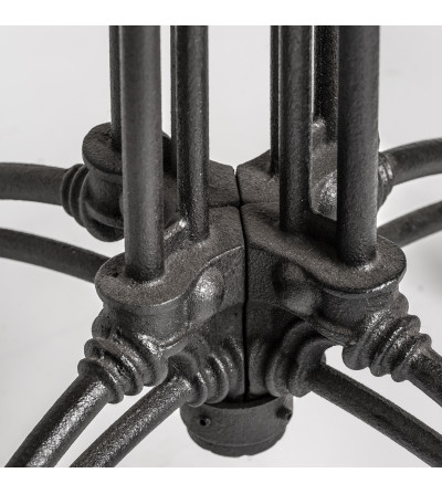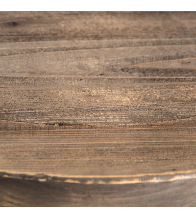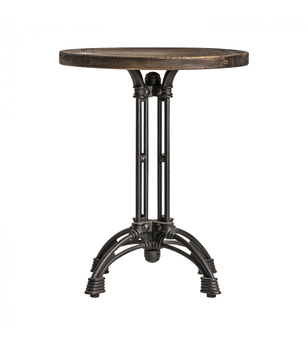 MESA BAR REDONDA BUCKIE, EN COLOR NEGRO/NATURAL ENVEJECIDO, DE ESTILO INDUSTRIAL. FABRICADO EN HIERRO, COMBINADO CON MADERA DE OLMO RECICLADO. PRODUCTO EXTENSIBLE.