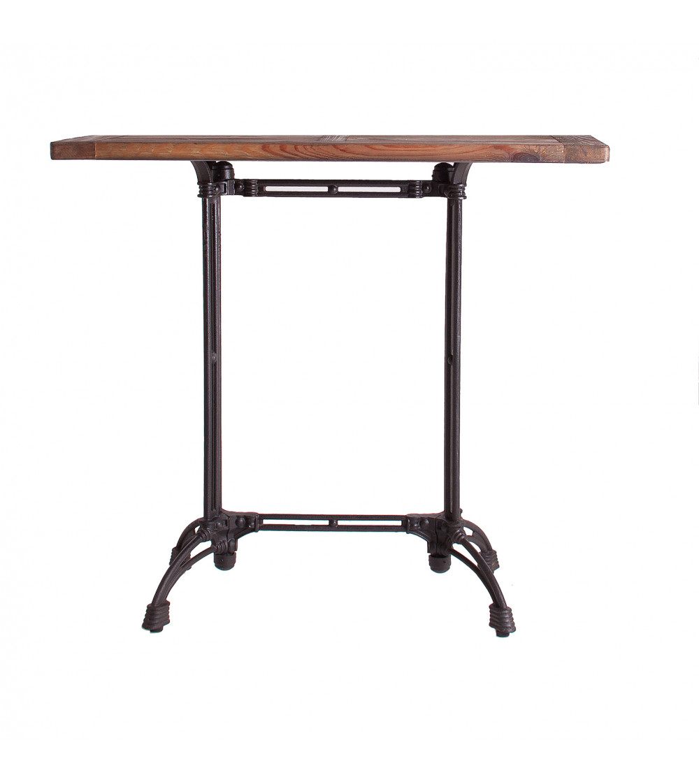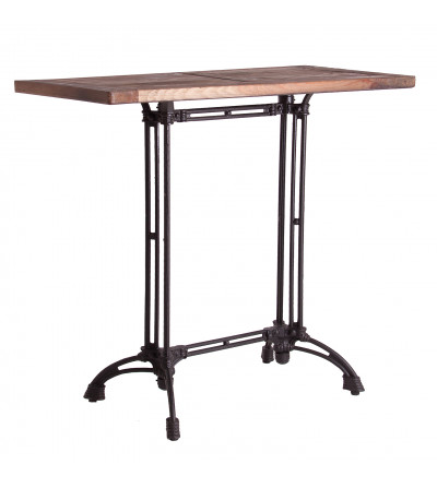 MESA BAR ALTA BUCKIE, EN COLOR NEGRO/NATURAL ENVEJECIDO, DE ESTILO INDUSTRIAL. FABRICADO EN HIERRO, COMBINADO CON MADERA DE OLMO RECICLADO. PRODUCTO DESMONTABLE.