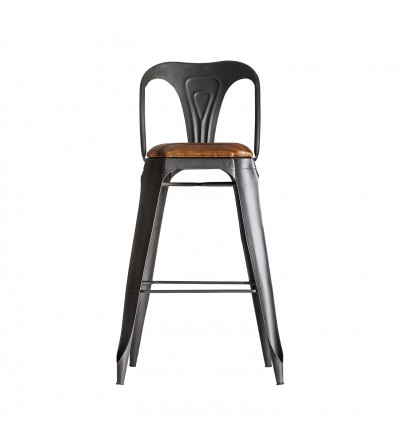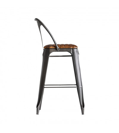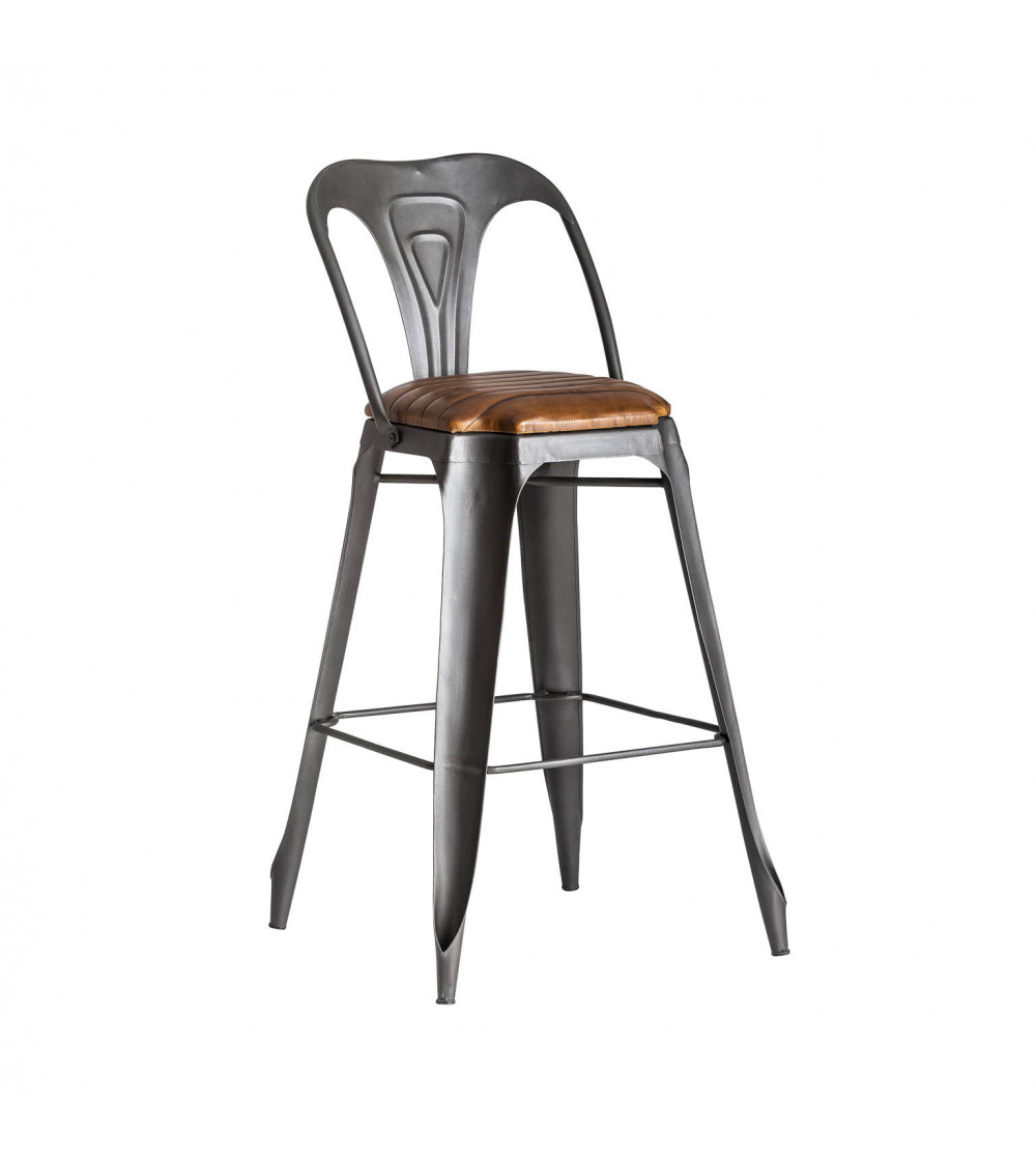 TABURETE ORON, EN COLOR GRIS/NATURAL, DE ESTILO INDUSTRIAL. FABRICADO EN HIERRO, COMBINADO CON PIEL.