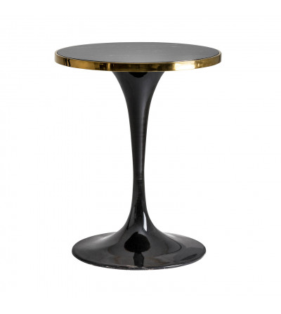 MESA BAR REDONDA THAN, EN COLOR NEGRO/ORO, DE ESTILO ART DECO. FABRICADO EN HIERRO, COMBINADO CON MÁRMOL SINTÉTICO. PRODUCTO DESMONTABLE.