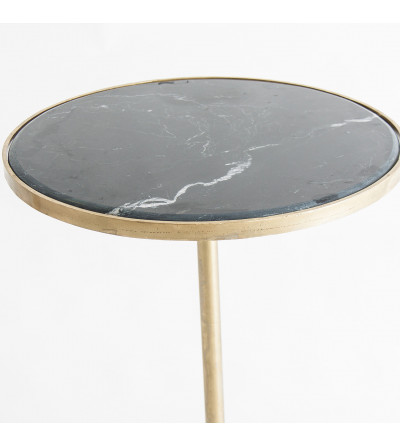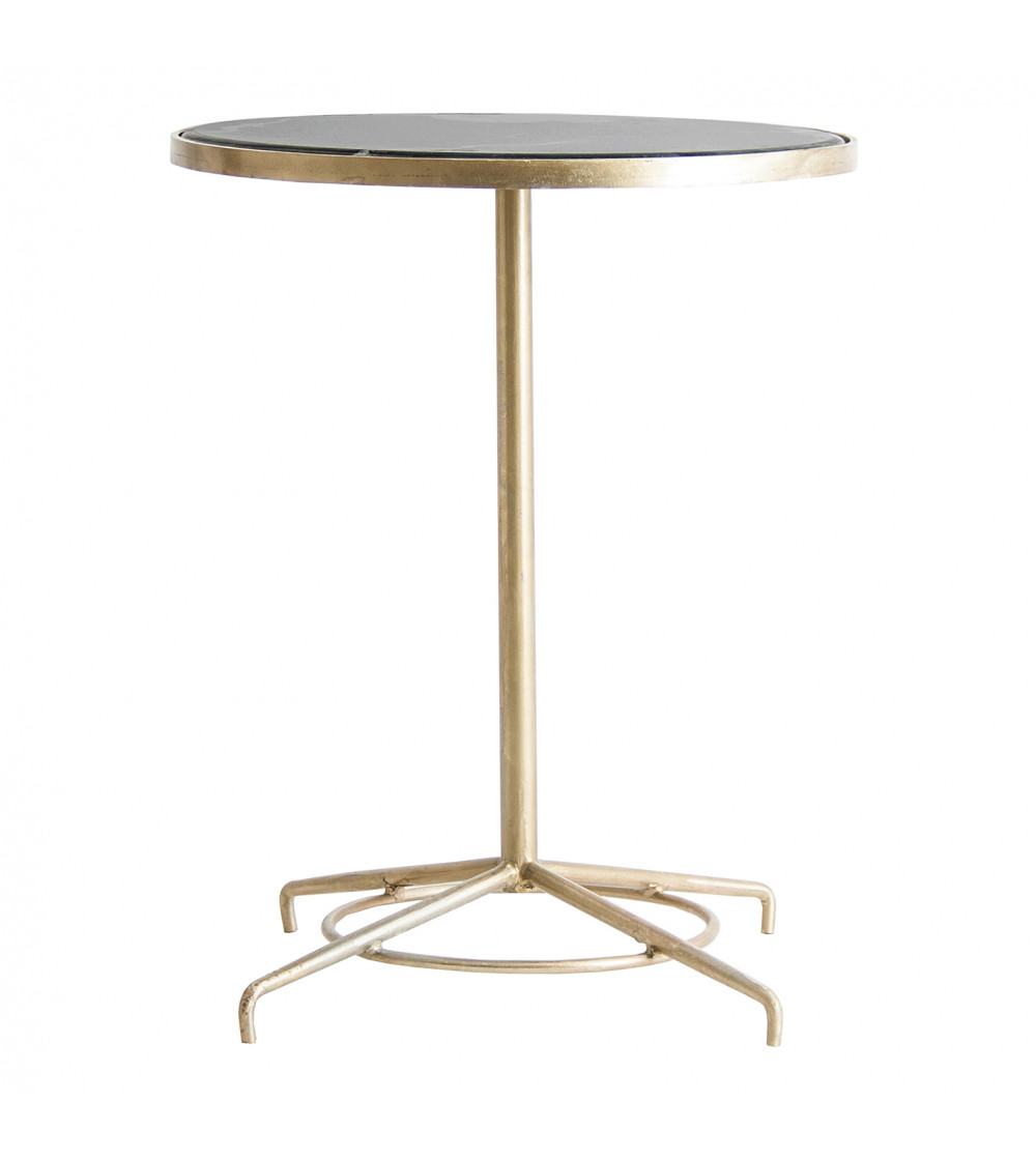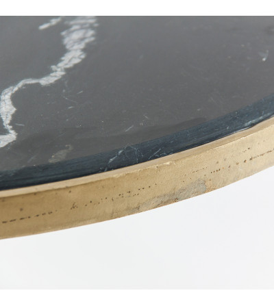 MESA BAR REDONDA HUEZ, EN COLOR NEGRO/ORO, DE ESTILO ART DECO. FABRICADO EN HIERRO, COMBINADO CON MÁRMOL. PRODUCTO DESMONTABLE.