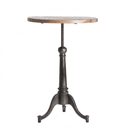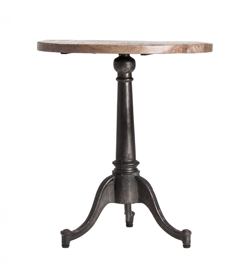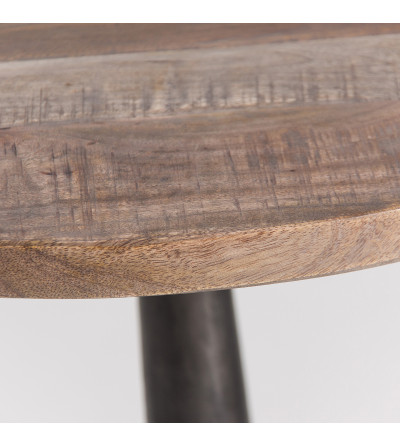 MESA BAR DEMING, EN COLOR NATURAL, DE ESTILO INDUSTRIAL. FABRICADO EN MADERA DE MANGO, COMBINADO CON HIERRO. PRODUCTO DESMONTABLE, ELEVABLE.