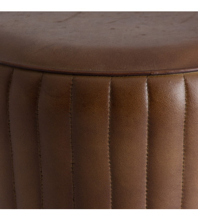 TABURETE SENEY, EN COLOR MARRÓN, DE ESTILO VINTAGE. FABRICADO EN HIERRO, COMBINADO CON CUERO CABRA.