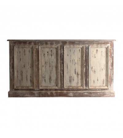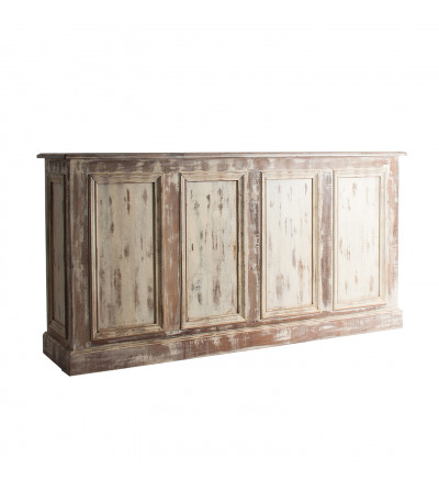 MOSTRADOR YICHUN, EN COLOR BLANCO DECAPADO, DE ESTILO ORIENTAL. FABRICADO EN MADERADE TEKA RECICLADA. DEBIDO A LA ELABORACIÓN ARTESANAL, PUEDE CAMBIAR DE FORMA, TAMAÑO Y COLOR.