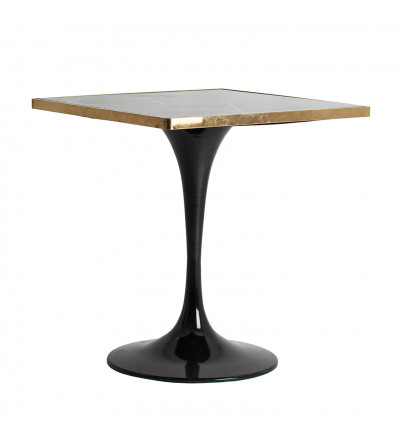 MESA BAR THAN, EN COLOR NEGRO/ORO BRILLO, DE ESTILO ART DECO. FABRICADO EN MÁRMOL SINTÉTICO, COMBINADO CON ACERO Y HIERRO. PRODUCTO DESMONTABLE.