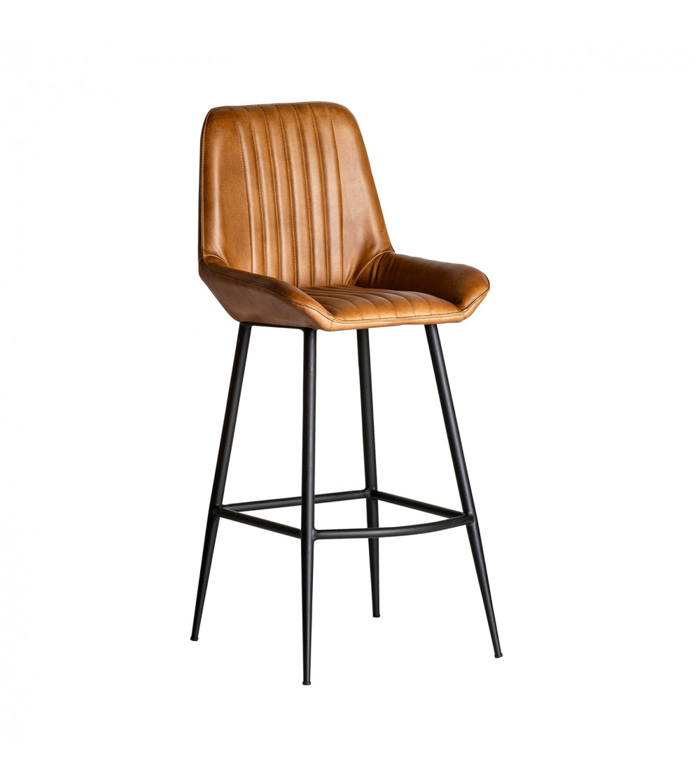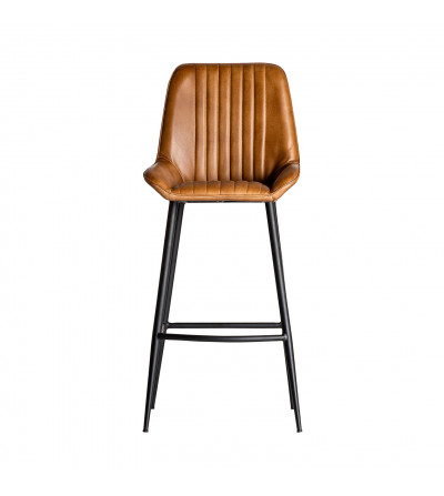 TABURETE MORTON, EN COLOR MARRÓN, DE ESTILO VINTAGE. FABRICADO EN HIERRO, COMBINADO CON PIEL. PRODUCTO DESMONTABLE.