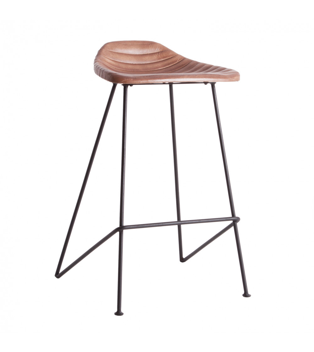 TABURETE ALMSTOCK, EN COLOR MARRÓN, DE ESTILO VINTAGE. FABRICADO EN HIERRO, COMBINADO CON PIEL.