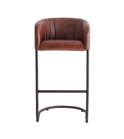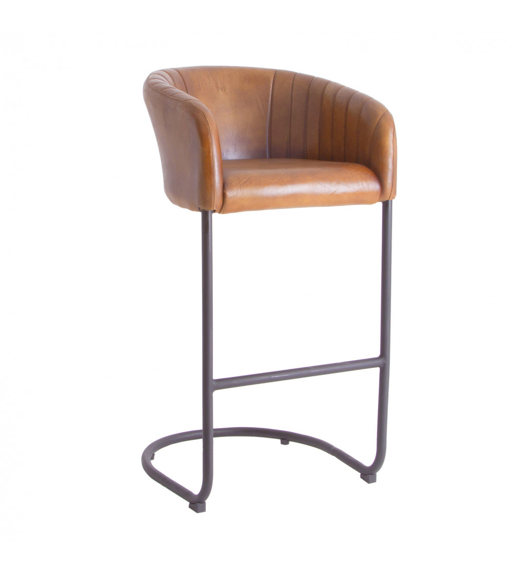 TABURETE ALMSTOCK, EN COLOR MARRÓN, DE ESTILO VINTAGE. FABRICADO EN HIERRO, COMBINADO CON PIEL.