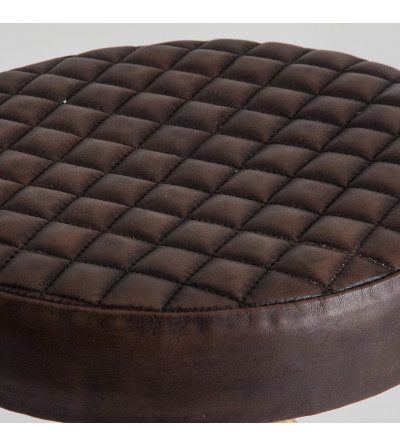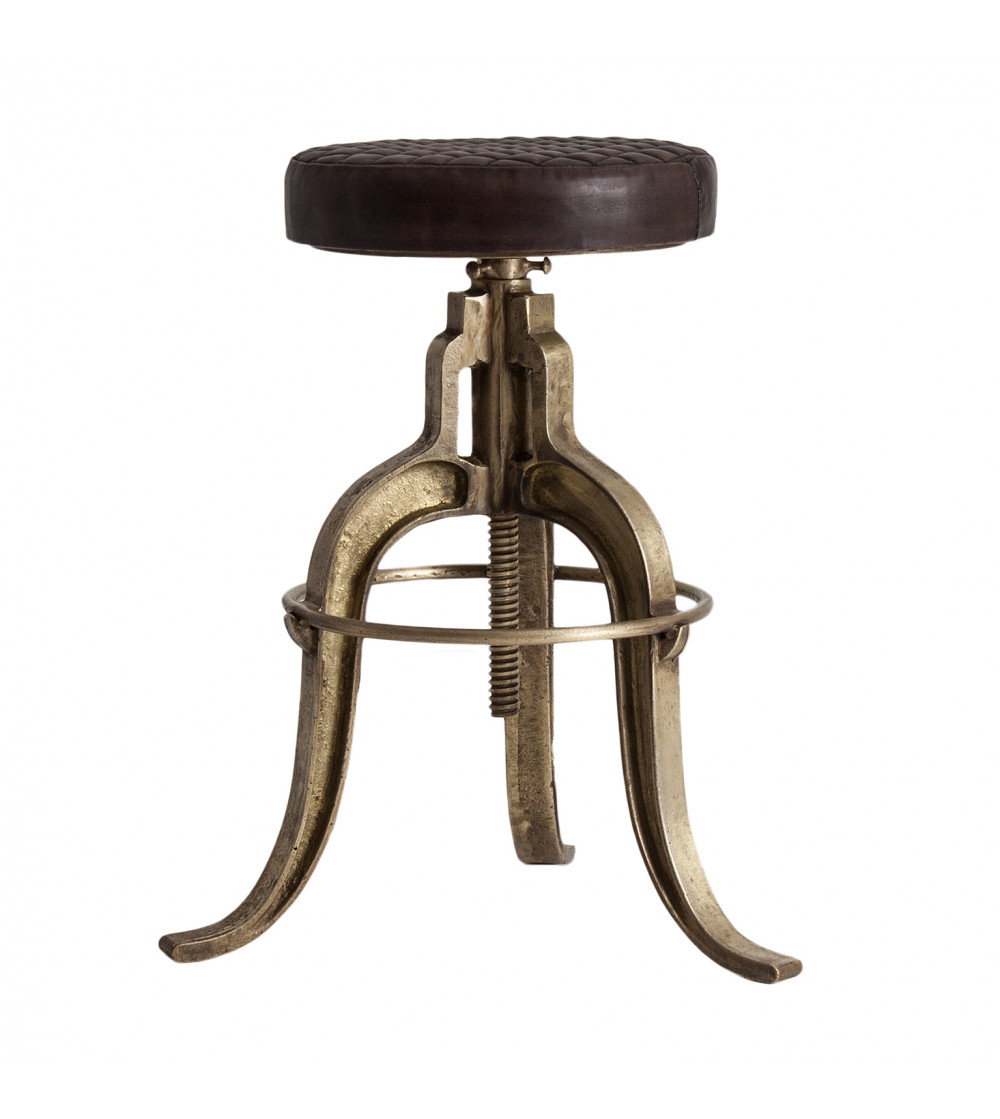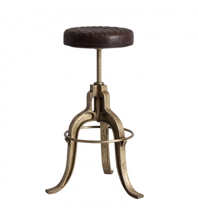 TABURETE REDONDO OTTAWA, EN COLOR MARRÓN/ORO VIEJO, DE ESTILO VINTAGE. FABRICADO EN HIERRO, COMBINADO CON CUERO. PRODUCTO ELEVABLE.