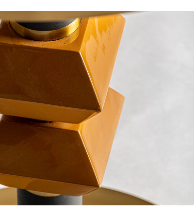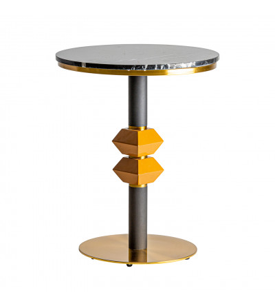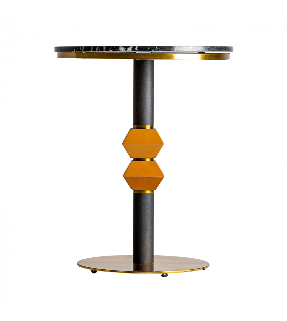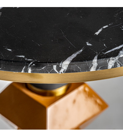 MESA BAR REDONDA MIELEC, EN COLOR NEGRO/ORO, DE ESTILO ART DECO. FABRICADO EN MÁRMOL, COMBINADO CON ACERO.