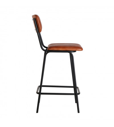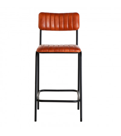 TABURETE MORTON, EN COLOR MARRÓN, DE ESTILO VINTAGE. FABRICADO EN CUERO, COMBINADO CON HIERRO.