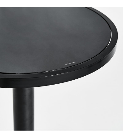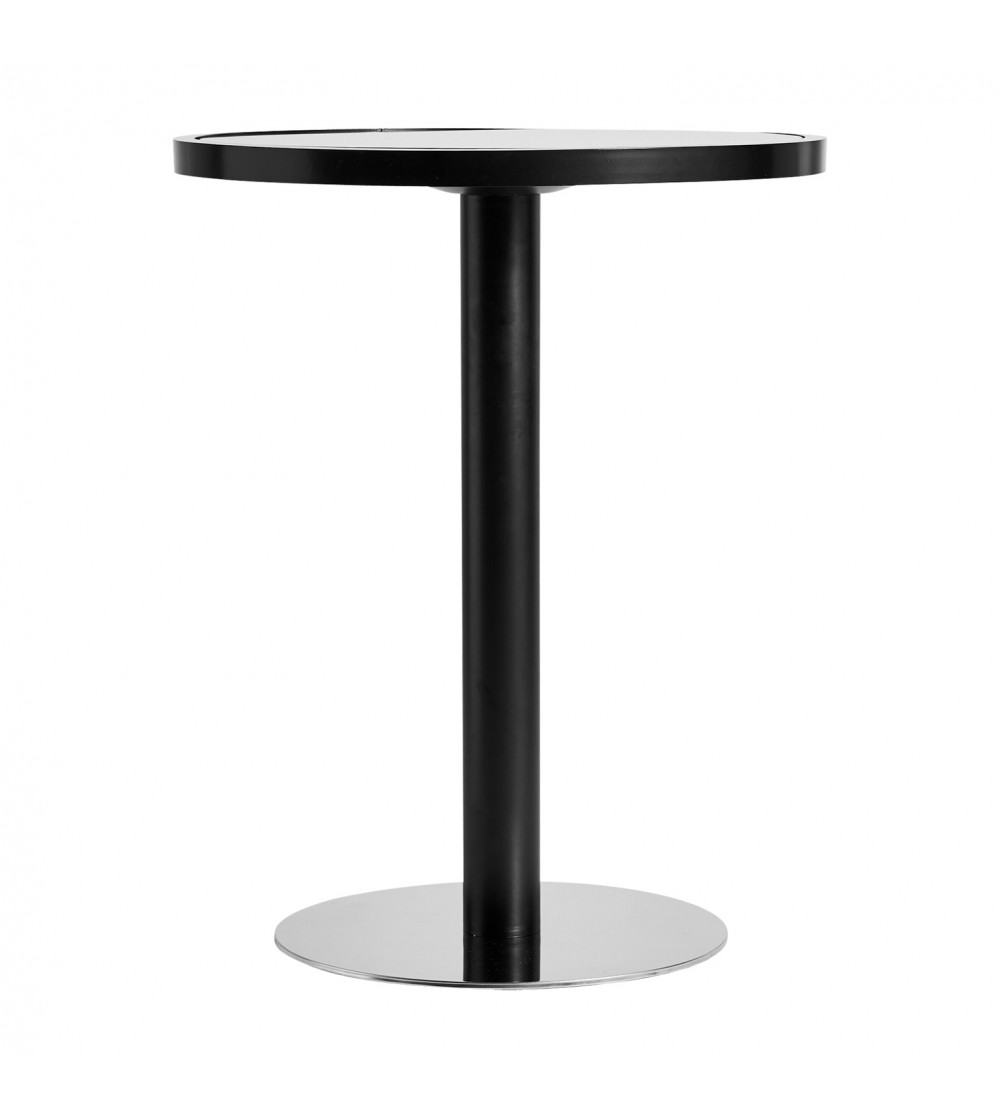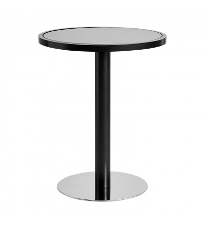 MESA BAR DIVION, EN COLOR NEGRO/PLATA, DE ESTILO CONTEMPORÁNEO. FABRICADO EN VIDRIO, COMBINADO CON ALUMINIO. PRODUCTO DESMONTABLE.